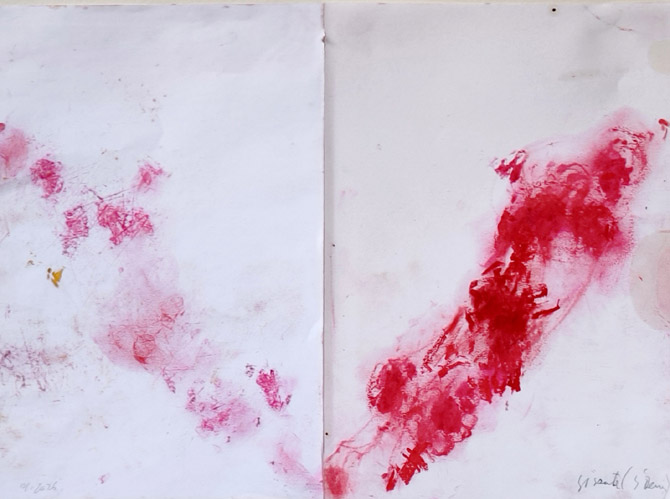 Relevé de gisant 3 et 4, dessins doubles, huile solide sur papier, 30