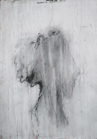 Pensant à Butadès, dessins mine de graphite et sable frotté, 40 x 30 cm, 2025-2026, collections particulières |