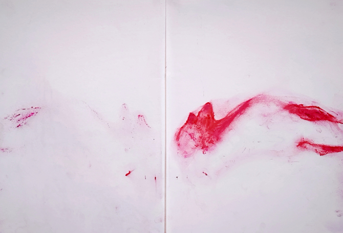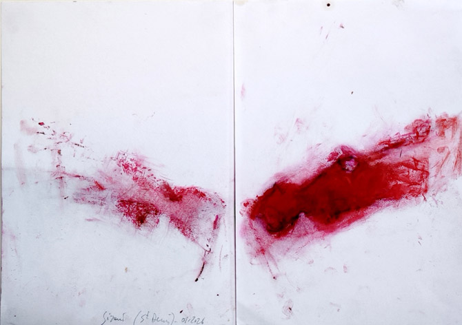 Relevé de gisant 3 et 4, dessins doubles, huile solide sur papier, 30